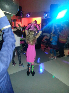 וכך צעדנו אמא ובת (כן….כן….שמעתם נכון – גם אני הייתי חייבת ללכת לנשף הזה – לא נותנים לילדים להסתובב פה לבד כפי הנראה עד גיל 72) לנשף בארמון….קפיטריה שכמה הורים קישטו אחרי בה"ס. אבל מספיק שהיה כדור דיסקו, DJ ענקי והרבה יותר מידי אורות מנצנצים ומבחינת נויה היא ממש צעדה לתוך פרק של HIGHSCHOOL MUSICAL.